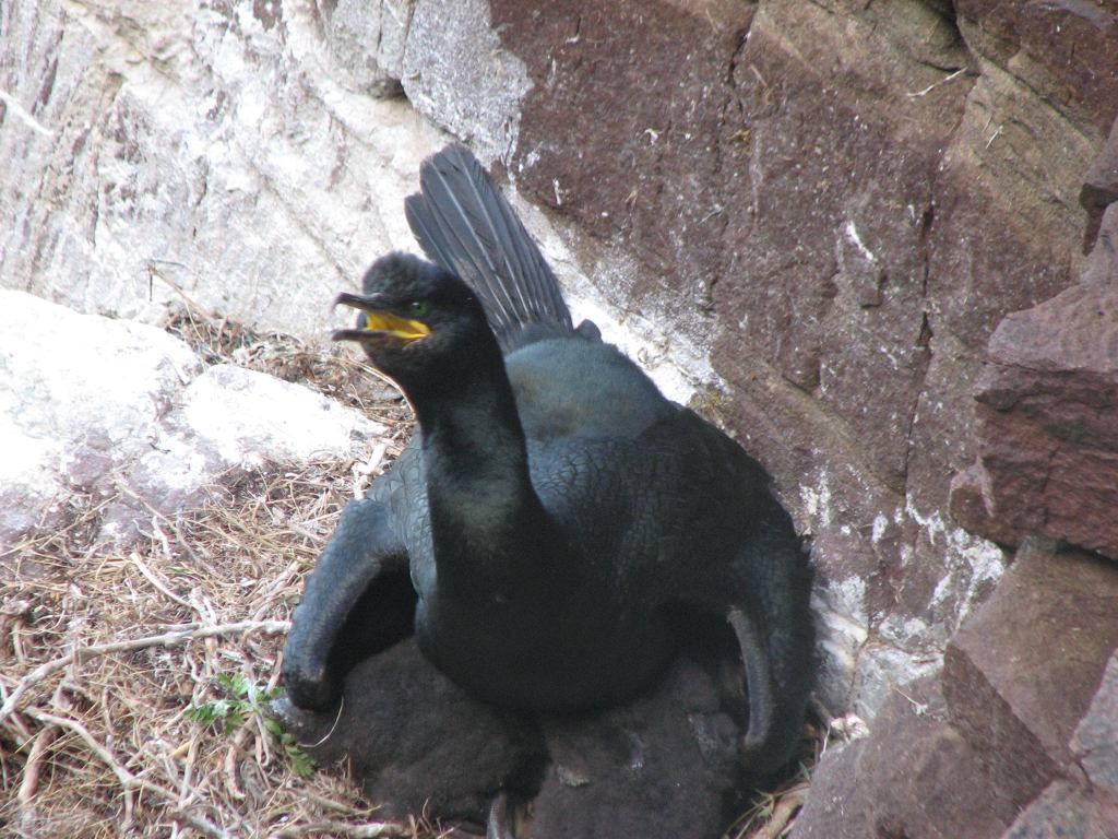 Le reste du groupe a pris un chemin vertigineux, où Gérard nous a fait un grosse frayeur en faisant une chute (glissade contrôlée) de 2m de haut, pour tomber sur moi. Heureusement sans gravité pour lui qui s’en sort avec une petite foulure, moi, j'ai été entrainé par cette chute, et j'ai désormais les fesses qui ressemblent à celle d’un singe. Remis de nos émotions, nous avons poursuivit par l’observation des oiseaux qui nichent à seulement quelques mètres de nous, des Cormorans, plusieurs sortes de Goéland, dont un couple de Goélands argentés en pleine explication musclée, des Mouettes par millier, quelques Pingouins Torda, des Pétrels fulmar, Guillemots de Troïl ,etc… Du coup, le passage étroit et un peu dangereux est passé comme une fleur, car tout le monde était émerveillé par ces observations et par la beauté saisissante du Cap Fréhel. 1h15 pour faire 300m c’est un record de lenteur !