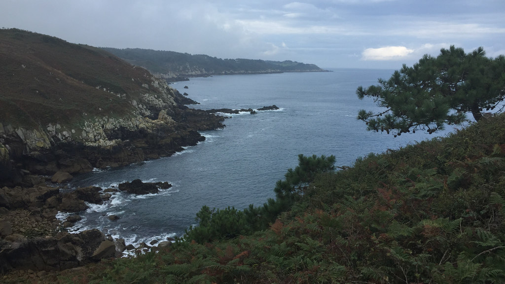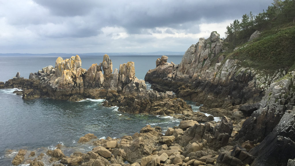Tout le monde est à l’heure au petit déjeuner. Il faut ensuite préparer son sac de rando et organiser les trajets en voiture qui nécessiteront tous les jours un peu de réflexion et de temps. Aujourd’hui ce sera un passage par la plage de Lostmarc’h qui sera notre point d’arrivée pour ensuite aller sur le parking des alignements mégalithiques de Lagatjar à Camaret pour démarrer notre rando. En route nous découvrons les villages typiques. Toutes les maisons sont en granit, sans étage et collées les unes aux autres, avec la particularité d’être un peu en dessous du niveau du sol pour se protéger du vent qui parfois souffle extrêmement fort sur la presqu’île.