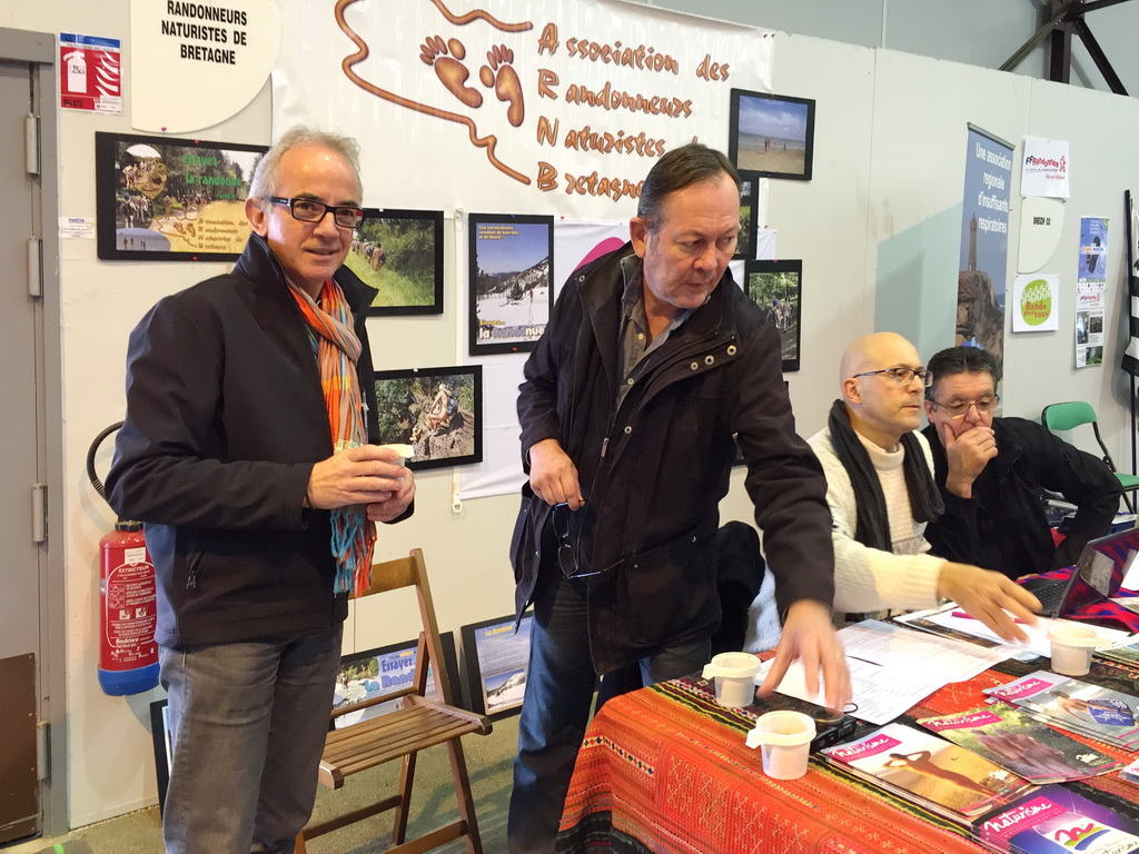Malgré une belle et bien visible signalétique, rester derrière le stand n’est pas très dynamique, c’est pourquoi chacun des membres de l’ARNB présent sur le stand, s’est efforcé d’aller au devant des visiteurs en leur précisant que nous n’avions pas une démarche de vendeur mais d’information de la randonnée naturiste et du naturisme en général.