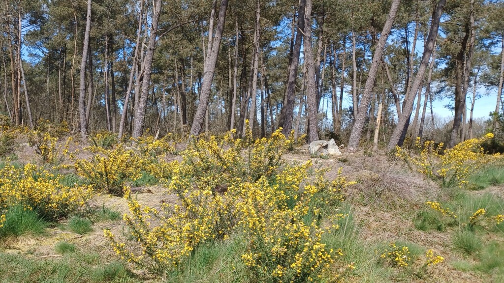 Nous repartons pour une mystérieuse découverte mais euphorique nous oublions de prendre des précautions (voir plus loin). Nous traversons la forêt un peu touffue toujours magnifique avec des nuances de vert, évitant le chemin trop boueux par moments. Le groupe s’étire et se disloque. On se perd dans la forêt de Christian que son grand-père a planté il y a plus de soixante ans. Je suis dans le premier groupe qui revient vers un chemin mieux tracé. Pascal essaye de rassembler les retardataires, Alain fait la jonction.