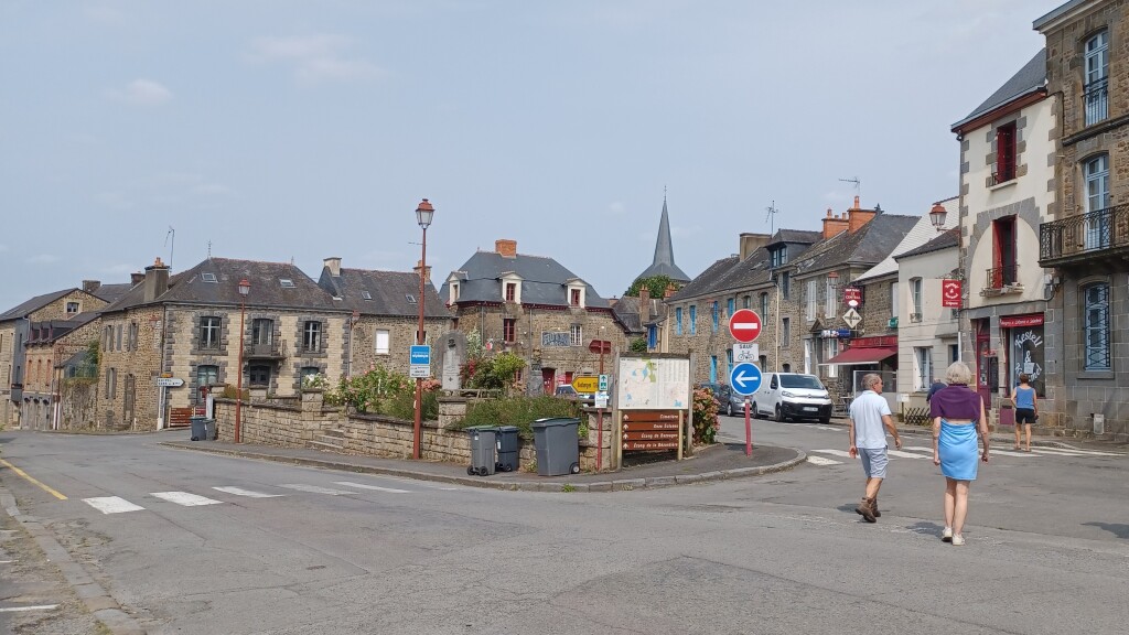 Nous passons à côté d’une bute de terre qui serait une motte féodale dite « motte aux Anglais » … pourquoi pas! Puis nous longeons des champs de maïs et des parties boisées sur plusieurs kilomètres sans rencontrer la queue d’un chat jusqu’à ce qu’on tombe surpris par une jeune femme portant un bébé et accompagnée par six chiens policiers; «rassurez-vous, nous dit-elle, nous sommes adeptes du naturisme» … ouf nous échapperons à l’amende…