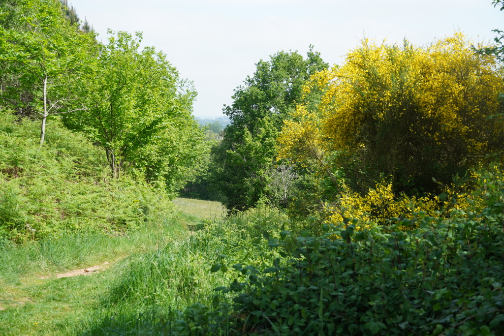 Nous avons grimpé puis descendu puis regrimpé des sentiers dans la forêt de pins et autres feuillus, de genêts fleuris et d'ajoncs défleuris (tant pis pour le parfum des fleurs qui sentent la noix de coco), mais aussi de bruyères et des fameuses asphodèles !!