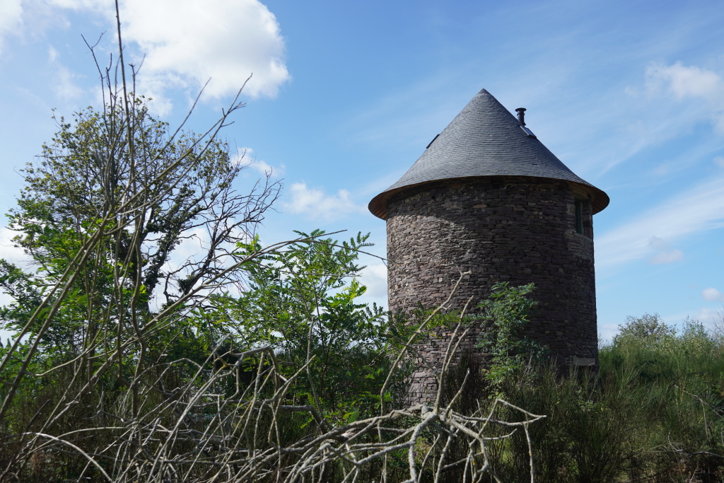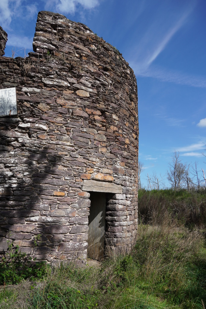 Repartis et en sortant des sentiers battus nous nous remettons en tenue d'Adam pour monter vers la lande qui nous offre une surprise, vestiges du passé: ses moulins, Moulins de Rohan, Campénéac. Proches l'un de l'autre, un restauré en habitation, le second en ruine avec une végétation envahissante autour au fil des années.