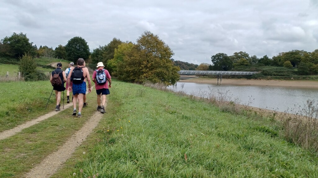 Notre départ a eu lieu au bord de la Vilaine,près d'un petit pont enchanteur, sur la commune de Bourgon (53). Nous étions 10 pour cette belle aventure sur les chemins pédestres.