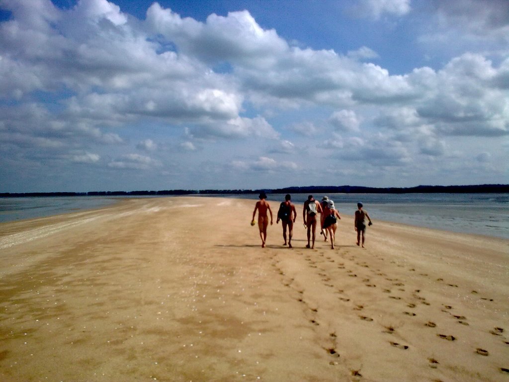 5h30 après le départ, la randonue se termine sous le soleil sur une belle plage déserte, devenue naturiste le temps de notre présence pour notre plus grand plaisir.